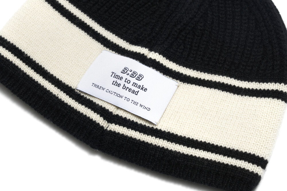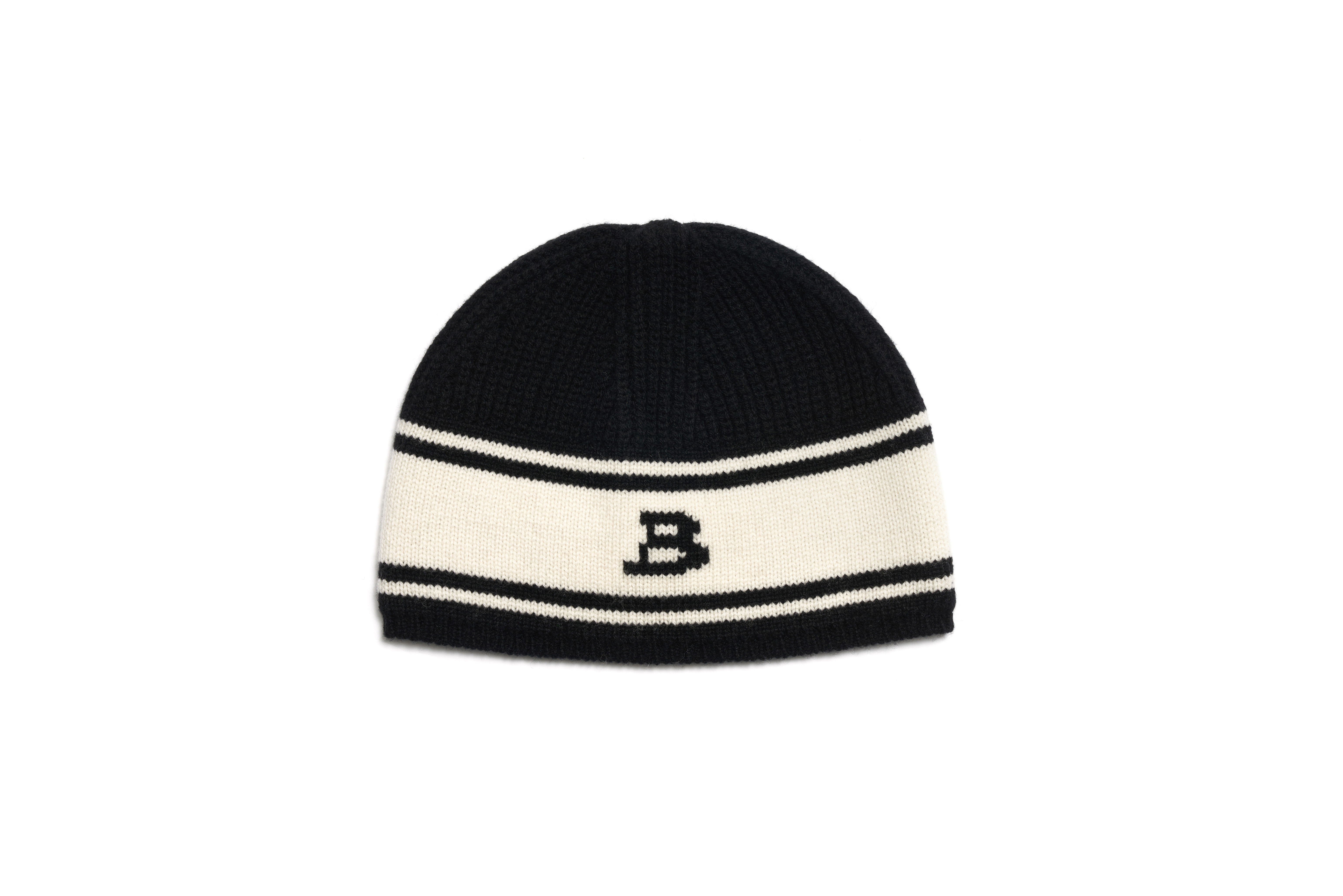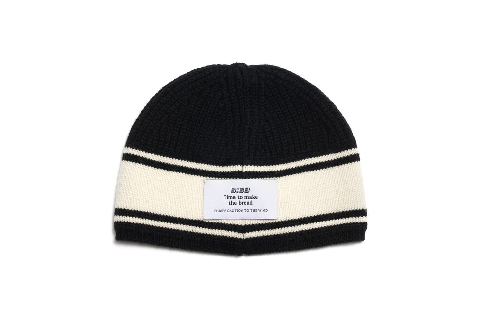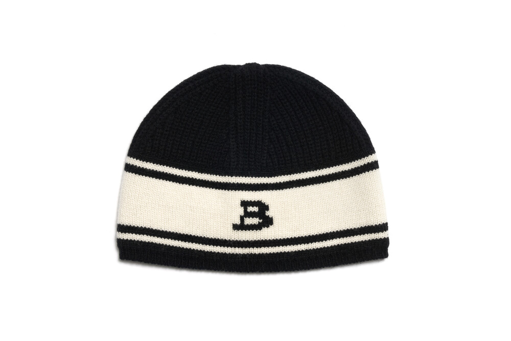 B Patched Wool Beanie, Black Ivory
